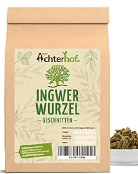 - ½ Teelöffel Ingwerpulver kann in heißem Wasser aufgelöst als Tee getrunken werden.