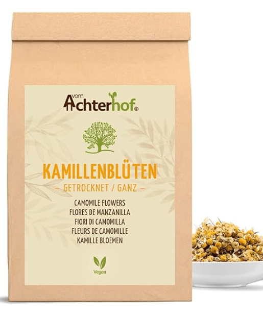 - Zutaten: 100 g getrocknete Kamillenblüten.
